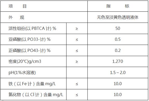 PBTCA含磷量低,由于它具有膦酸和羧酸的結(jié)構(gòu)特性,使其具有良好的阻垢和緩蝕性能,優(yōu)于常用的有機(jī)膦酸,特別在高溫下阻垢性能遠(yuǎn)優(yōu)于常用的有機(jī)膦酸,能提高鋅的溶解度,耐氯的氧化性能好,復(fù)配協(xié)同性好。在阻垢緩蝕劑復(fù)配中應(yīng)用廣泛,是性能良好的產(chǎn)品之一,也是鋅鹽的優(yōu)良穩(wěn)定劑。